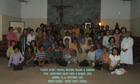 Foto saat anggota Meditasi Kristiani Surabaya & Malang gabung mengikuti Retret di Lawang tanggal 15-16 Sept 2007. Acara ini terselenggara untuk anggota Meditasi Kristiani Malang, Dampit, Turen, Kepanjen, Surabaya berjumlah mencapai 75 orang, suasana udara yang sejuk dan keadaan sunyi senyap serasa diri ini dibawa ke arah keheningan